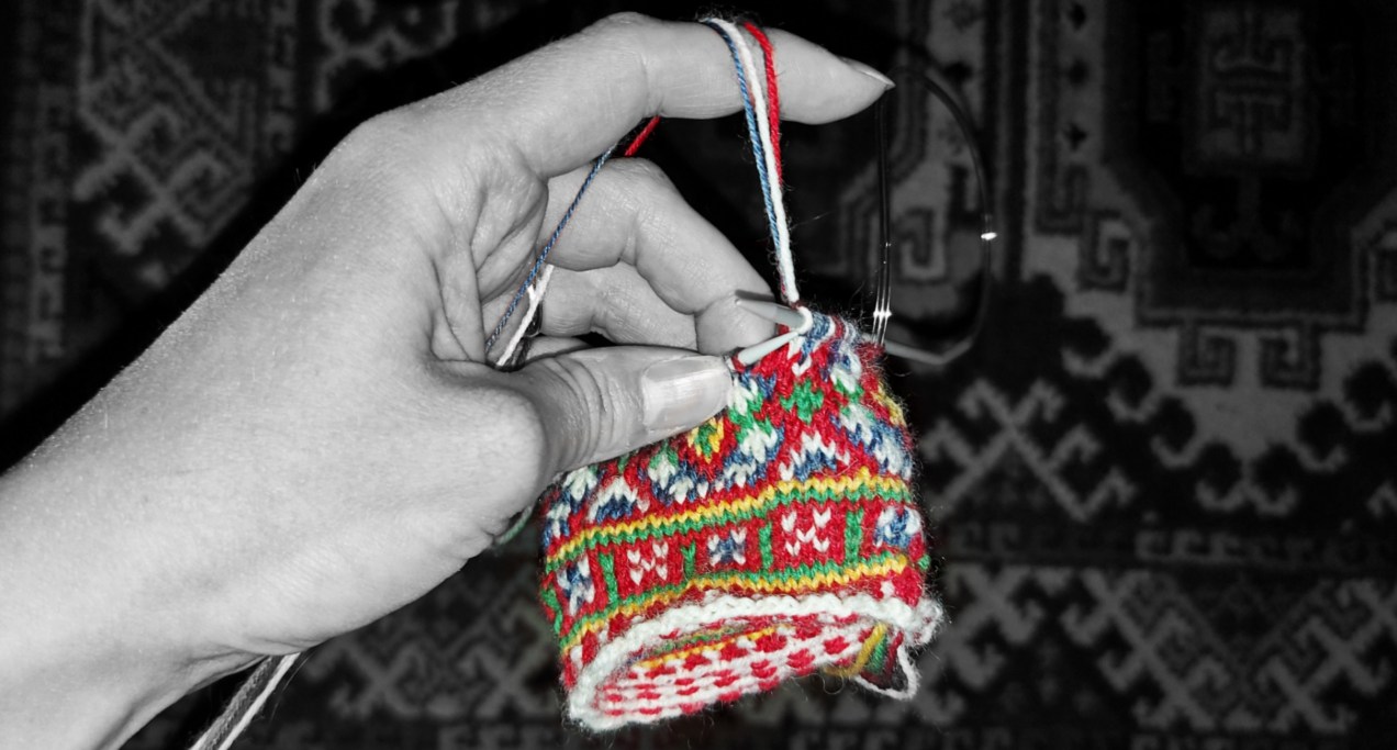 En oo tottunt tekee neuleohjeita, mutta toivottavasti pääpointti – eli lankojen järjestys kädessä – välittyi.