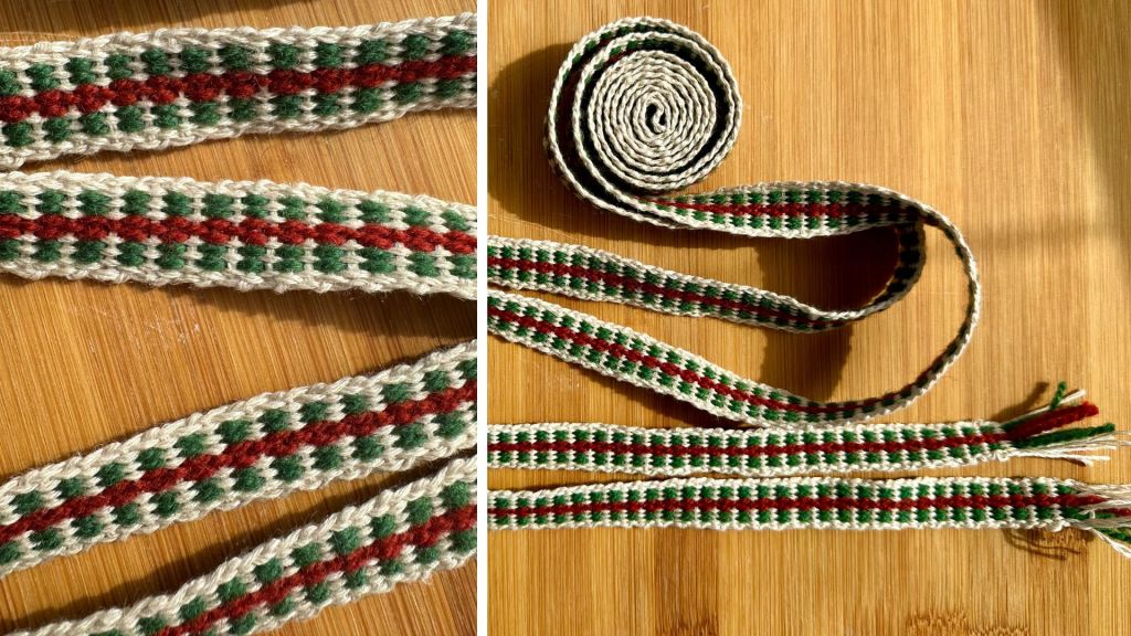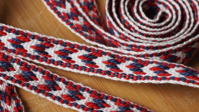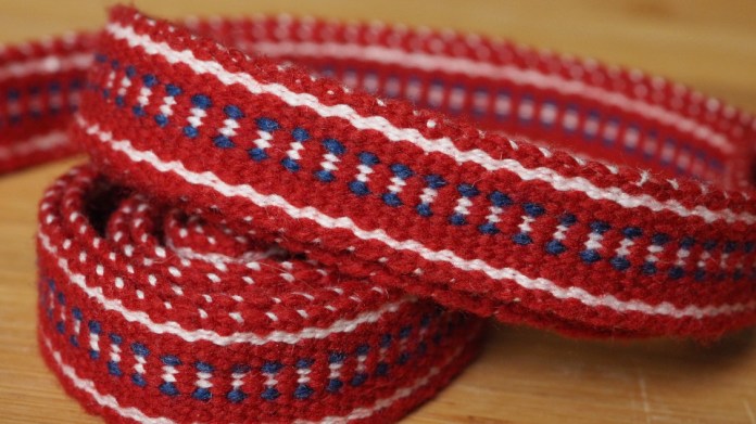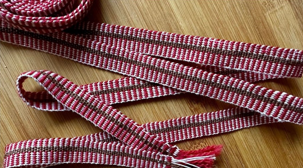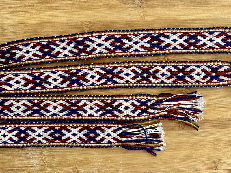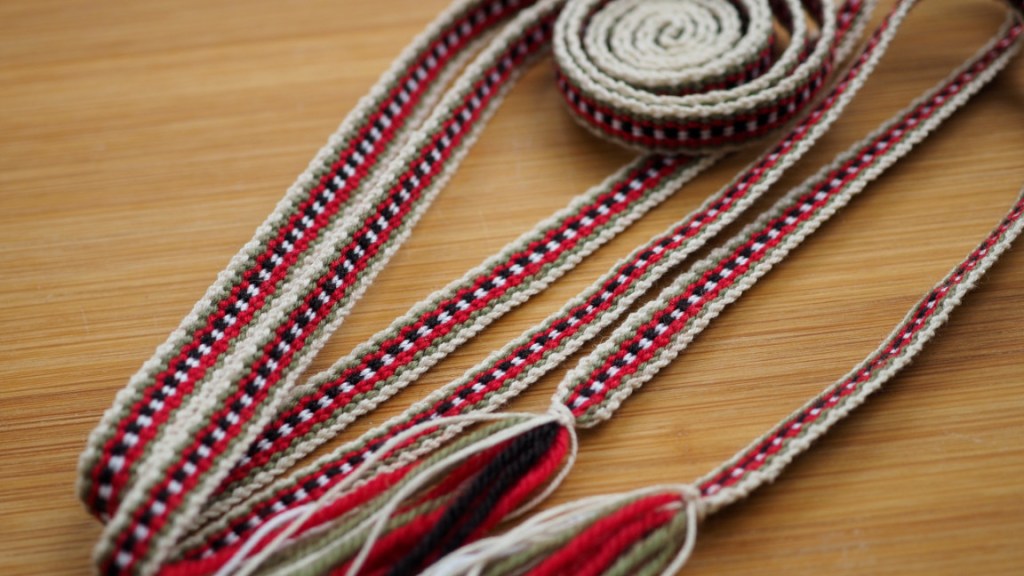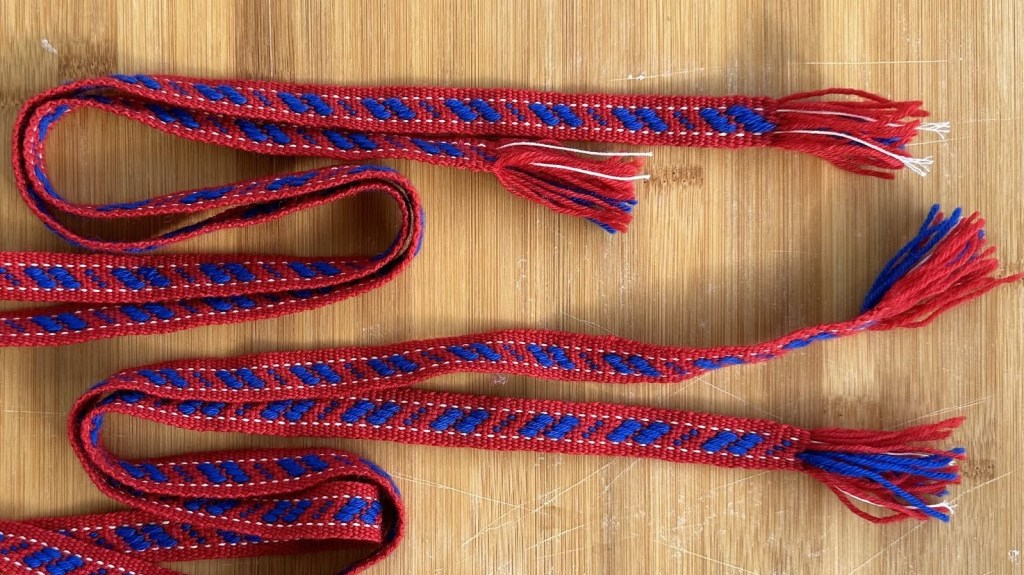 Palmikkovyö “hahlankoukkuja ja yksisoittoisia ristejä” (esikuva Schvindt 1904, nro. 132)