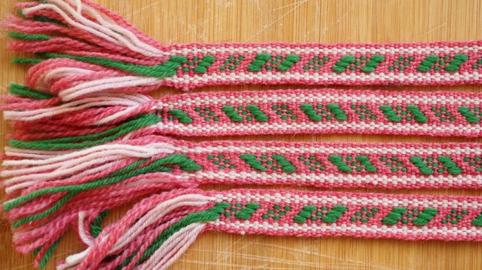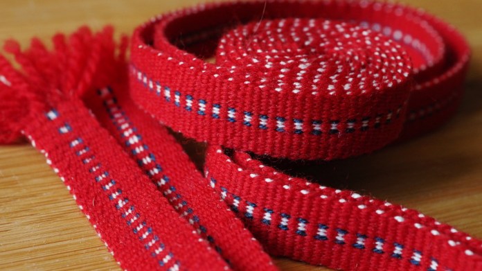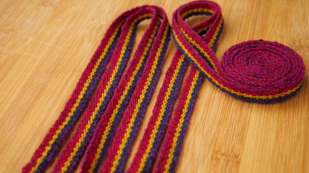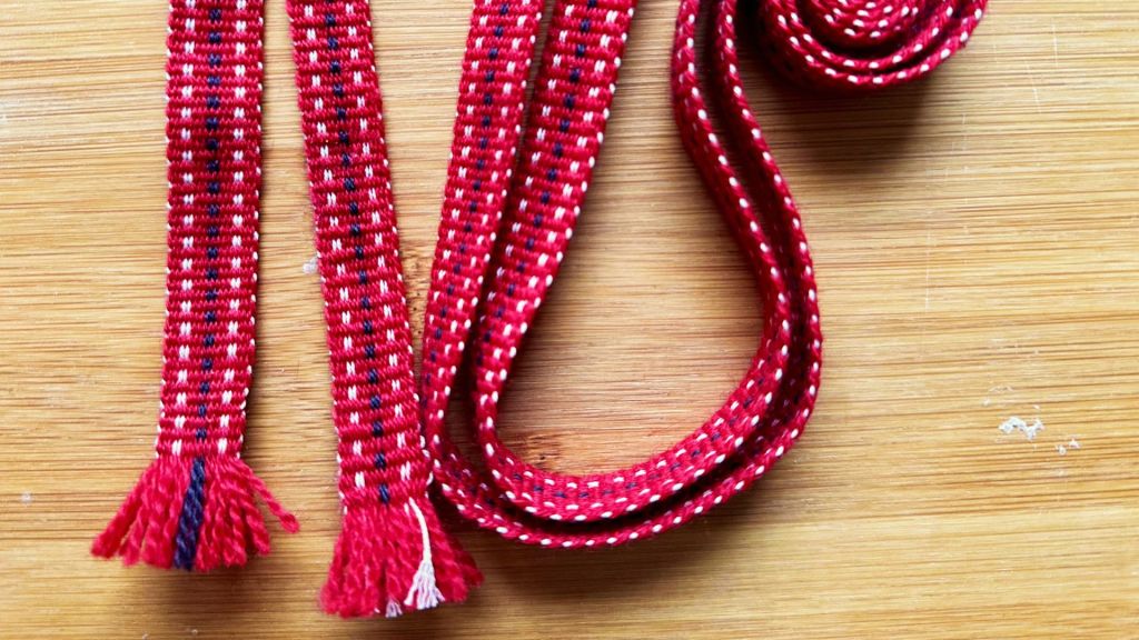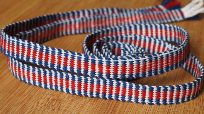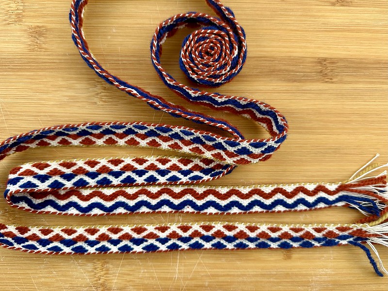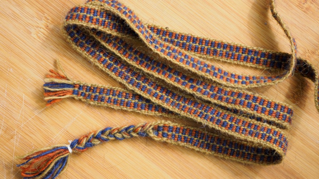 Palmikkovyö “hahlankoukkuja ja yksisoittoisia ristejä” (esikuva Schvindt 1904, nro. 132)