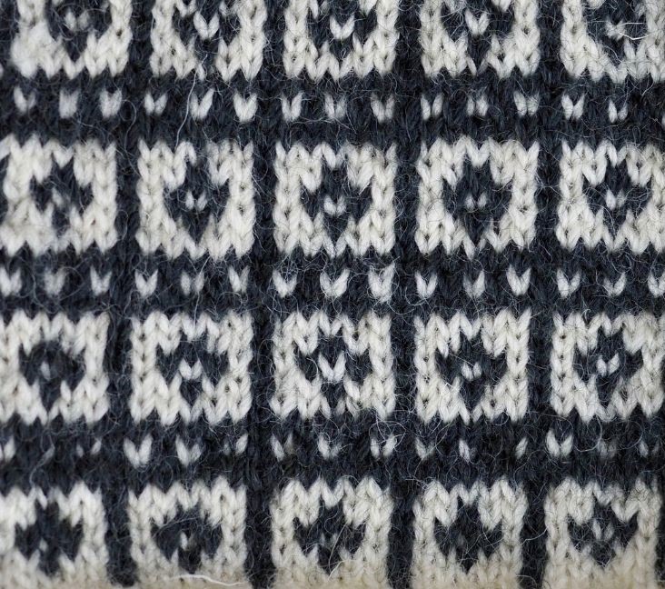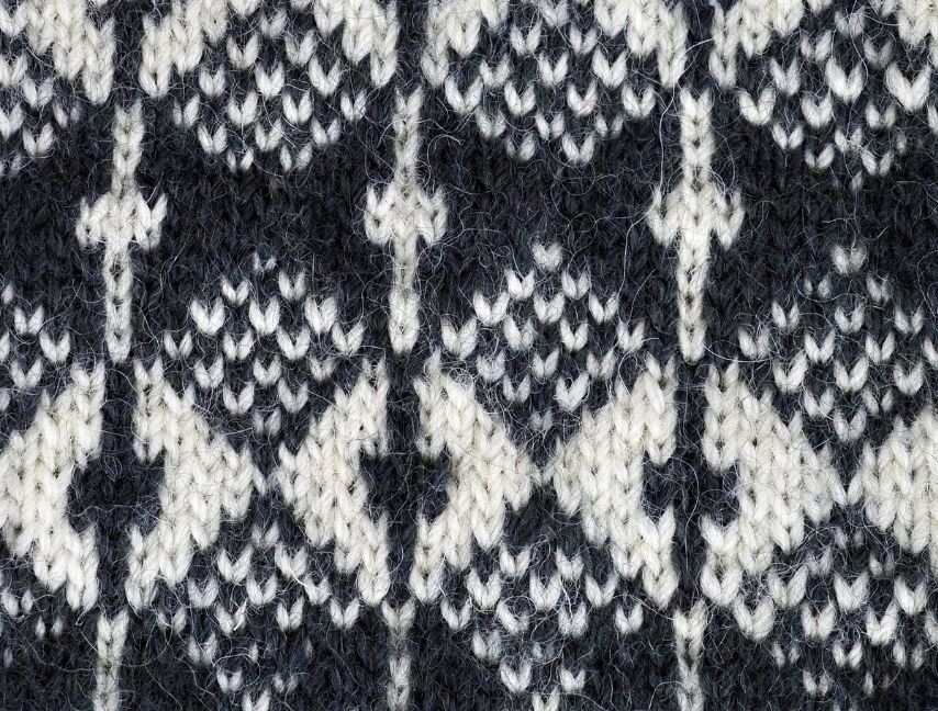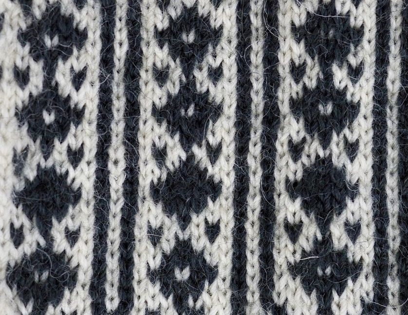 Malli: Vilhelmiina Klaus, Lavansaari. “Tämän kirjan syntymä onvähän poikkeava, sillä Siiri oli piikana saaressa olevalla papilla ja hän huomasi tapetissa sellaisen kuvion, jota oli mukava neuloa kintaaseen. Siitä hän suunnitteli kintaaseen kuvion, joka levisi saaren naisten neulomisiin ja niin oli Siirinkirja valmis.” (Mäkynen 1979.) Minulta löytyy kotonta virolainen neuletakki, jossa on hihaliitingeissä täsmälleen samaa kuviota. Myös tämän kuvion alkuperä voi siis olla Viro.