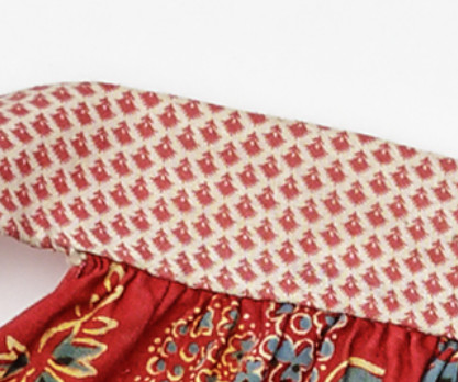 Vehkalahtelaisessa hameessa (NM.0048355C) on käytetty ostonauhaa hameen vyötärönauhana. En ole nähnyt samaa Kannaksen hameissa, mutta miksei esimerkiksi modernissa jääskeläisessä hameessa voisi käyttää ostonauhaa pirtanauhan sijaan.