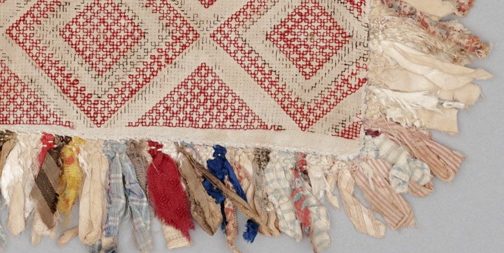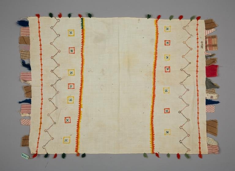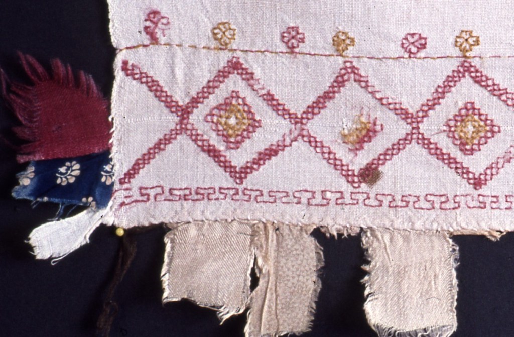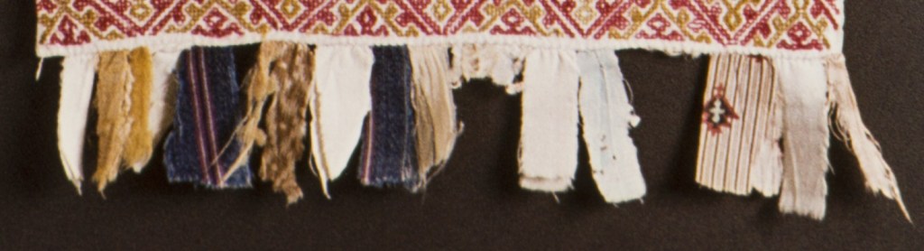 Myös Rannan kihlakunnan esiliinoista löytyy ostonauhoja. V Arvioisin, että tähän valitut esiliinat edustavat Koiviston tai Kuolemanjärven tyyliä, mutta en voi 100 % taata tätä: Venäjän etnografisen museon (REM) esiliinoissa ei ole mukana paikkatietoa. Unkarista löytyy lisäksi yksi koivistolainen esiliina (NM 4123).