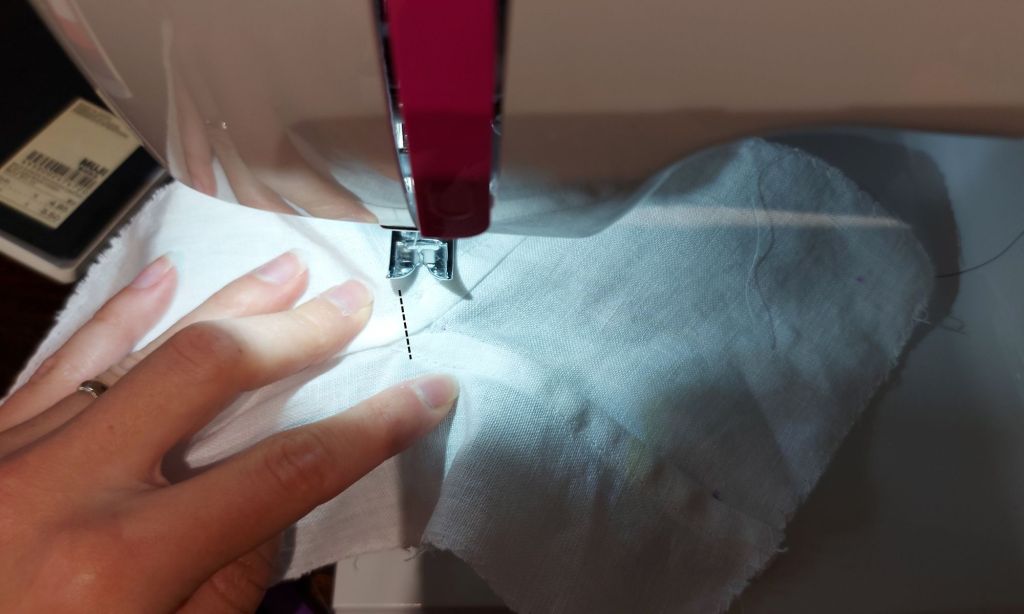 - jos kangas on ohutta, ja saumavarat näkyvät kankaan läpi oikealle puolelle;