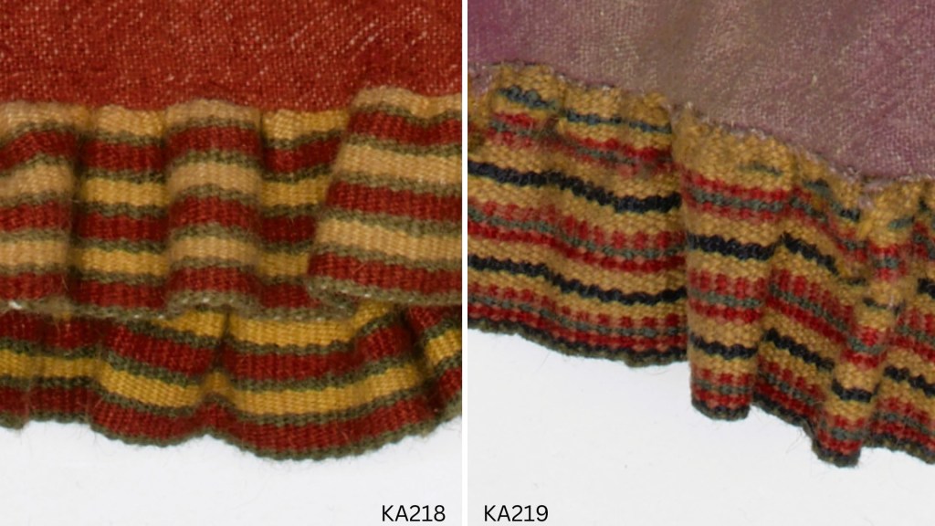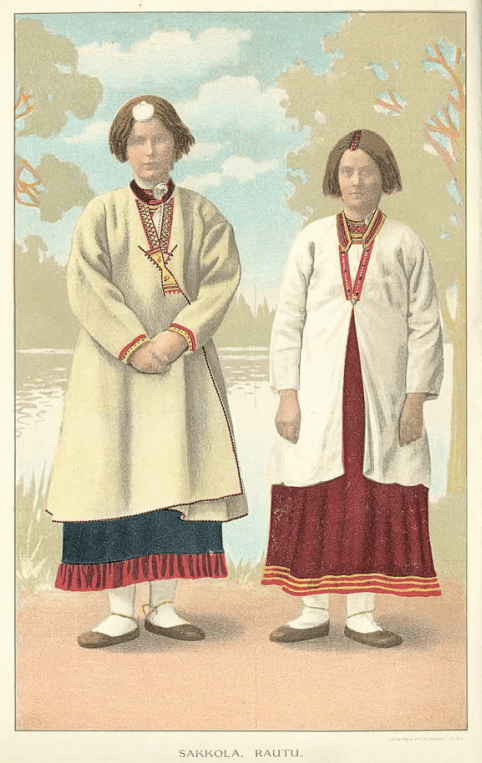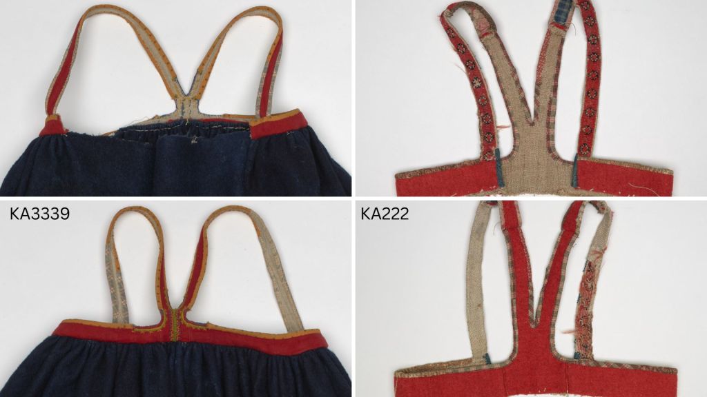 Mitä enemmän kävin läpi vanhoja piirroksia ja museoesineitä, sitä varmemmaksi tulin siitä että tämänlainen tankki ei parhaiten edusta jääskeläistä pukeutumista. Jääsken kansallispukuun valittu halkeimellinen, punaverkakoristeltu tankki vaikuttaa olevan aika harvinainen, sillä sen esikuvan lisäksi en löytänyt muita vastaavia piirroksista tai museokokoelmista. Verkakoristeltu tankki kuitenkin mainitaan aikalaiskuvauksissa, ja kansallispuvussakin se perustuu historialliseen esikuvaan. Siten se on ihan “oikea”, vaikka esikuva olisikin cherrypickattu.