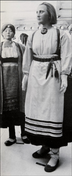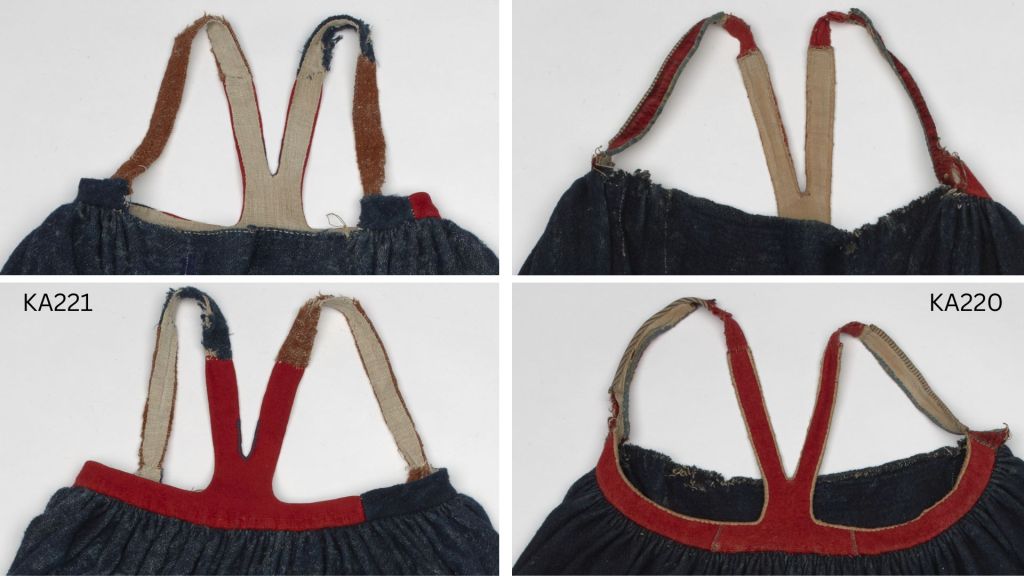 Kahdessa tankissa (KA1416, 1418) nappeja on kaksi. Alla on kuvattuna näistä toinen, vasemmalla Toini-Inkeri Kaukosen pukukirjassa (1985) ja oikealla Sireliuksen (1915). Miksiköhän Sireliuksen kirjan piirroksessa ei näy hakasparia?