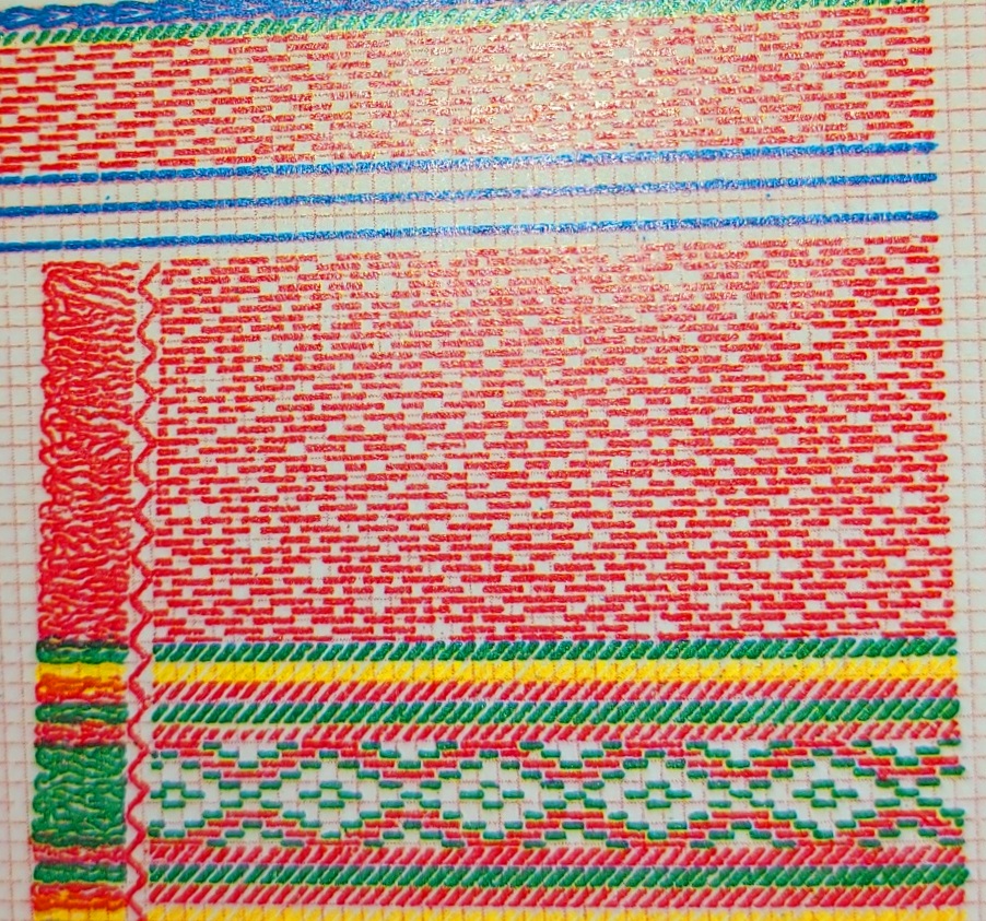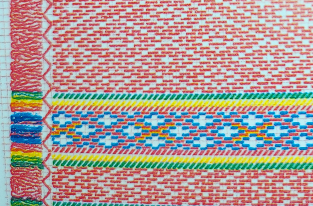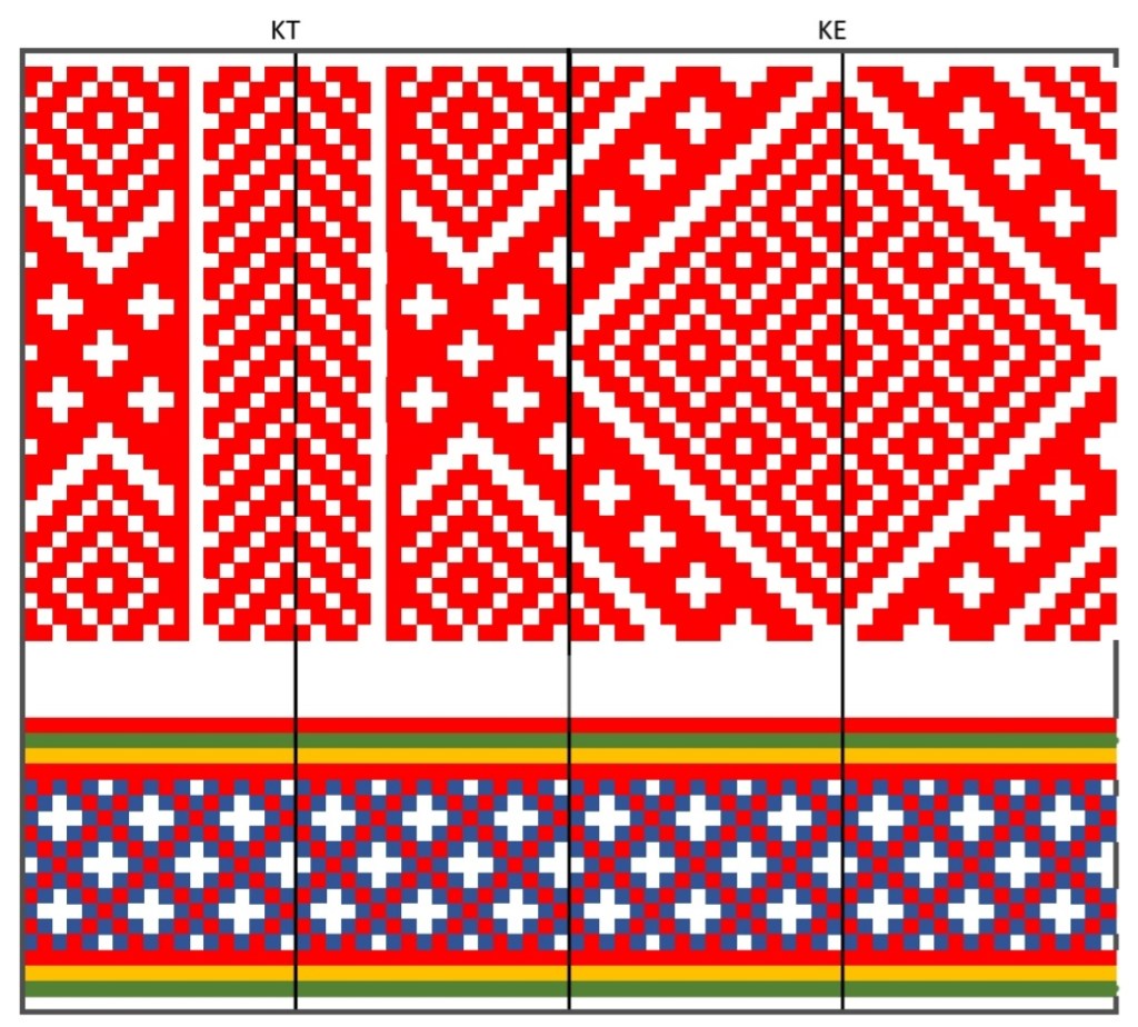 Kuluneen parin kuukauden aikana olen perehtynyt tarkemmin karjalaisissa kostuleissa ja rekoissa esiintyviin kirjontakuvioihin. Näissä on kahta eri kuviotyyppiä: ero on selvästi havaittavissa värien käytössä ja kuvion yksityiskohtaisuudessa. Oma hypoteesini on, että ensimmäisessä ohjeessa esiintyvä siiviläiset ovat kudotuista lautanauhoista periytyvä kuvio ja seuraavan ohjeen murteikassilmät puolestaan eurooppalaisista renessanssiajan kirjonnoista mallinsa saanut.