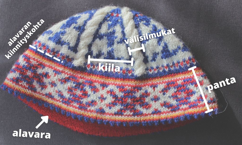 Tyylikkäin tapa olisi kiinnittää alavara päälliseen samassa kohtaa, jossa pantaosan kirjoneuleraita päättyy ja lakin päällisosio alkaa. Tähän kohtaan saattaa tulla pieni kupru, jonka kuvion vaihtuminen piilottaa. Siten siis alavara kannattaa yrittää laskea oikean mittaiseksi.