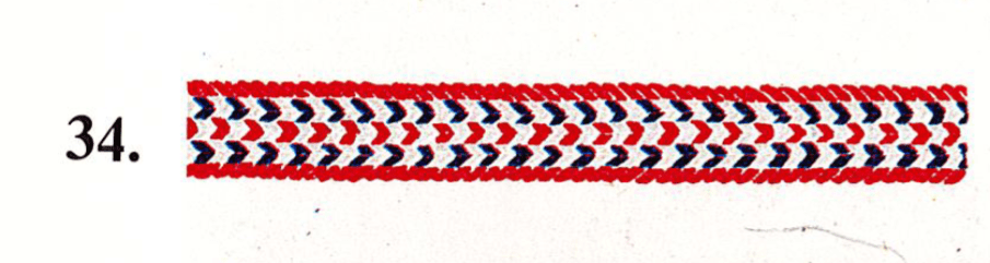 Varren kuvio on helppo vaikkakin kolmivärinen. Lankadominanssin kanssa kannattaa menetellä niin, että valkoinen lanka kulkee etummaisena ja joko sininen tai punainen takana – kumman värin haluaakaan jättää taustalle. Vinkkejä moniväriseen kirjoneuleeseen.