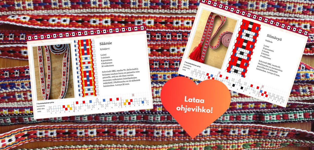 Voit nyt ladata tulostamiseen sekä puhelimella selailuun optimoidun vihkosen kokkaniekkakuvioiduista pirtanauhoista. Vihkosesta löydät tietoa kokkaniekkavöiden käyttämisestä ja rakenteesta, vinkkejä lankoihin sekä ohjeet yhdeksään pirtanauhaan. Mallit ovat Sakkolasta, Raudusta, Pyhäjärveltä, Valkjärveltä ja Käkisalmelta.