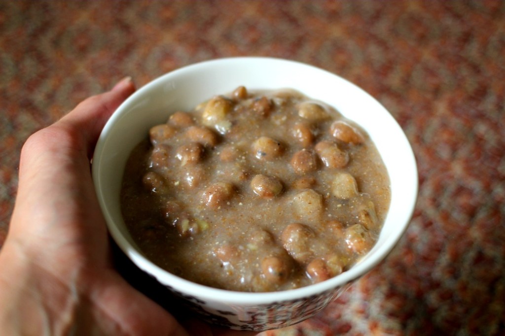 Kaurakiisselini on saavuttanut 70 asteen lämpötilan, ja alkaa muistuttaa vähemmän velliä ja enemmän puuroa. Liisteröityminen näyttäisi olevan nyt käynnissä. Yritän seurata lämpötilan nousua lämpömittarilla, mutta en usko lukemieni olevan tarkkoja. Ongelmana on mittarin päähän paakkuuntuva kiisseli, joka tuntuu haittaavan lämmön siirtymistä mittariin asti.